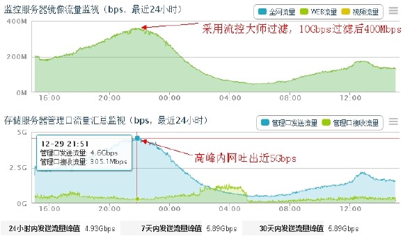 某中型规模 ISP 运营商,10G 带宽环境,试用缓存大师 ISP 版上线一周时间,单机版服务器命中输出流量 875Mbps,随即决定再上分布式,增加到 4 台存储服务器,一个月峰输出流量达 3.3G,目前高峰输出达 5Gbps!每天节省 20T-30T,每周节省 120T 左右